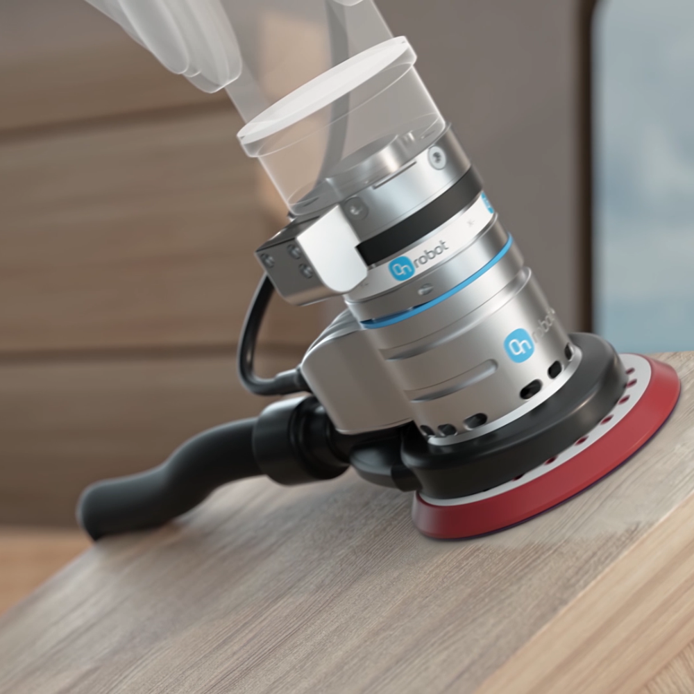 An additional advantage of the OnRobot electric Sander is that it doesn't need a pneumatic hose. That simplifies setup by eliminating the air supply and additional cabling and wire tubing, as well as reducing maintenance costs. Studies show that manufacturers can save more than $1,600 annually on a single shift with 240 days of operation with the electric Sander vs. pneumatic alternatives. The brushless electric motor can run for 30,000 hours. “Based on use on a day shift, it'll last ten-plus years, easily. That's pretty unheard-of for sanders,” says Hsieh.